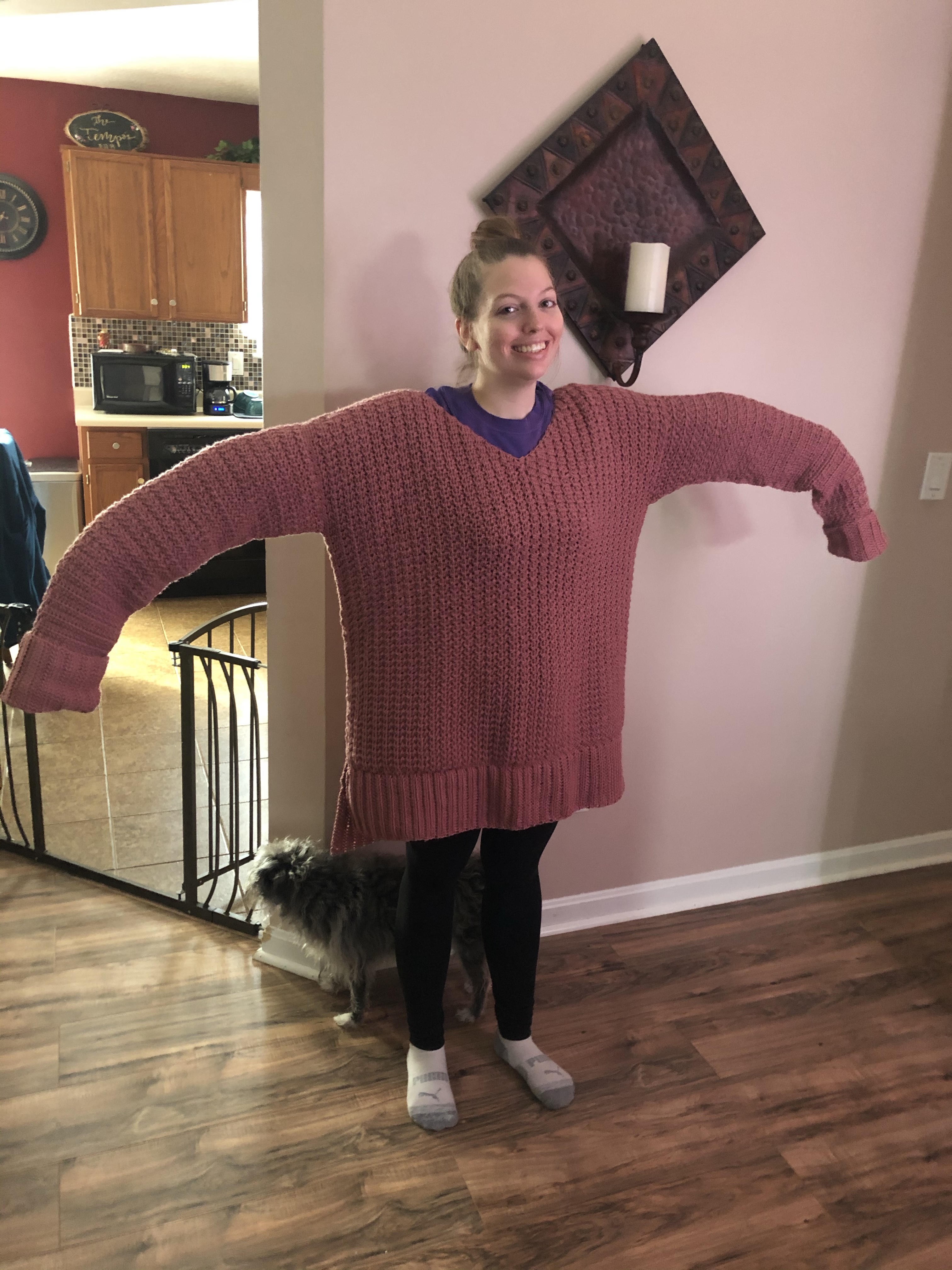 This pattern takes time and is not a quick project like many that I’m used to. I felt myself getting tired of it and wanted something that had instant gratification. I kept pushing myself and ended up with a sweater that was 4 sizes too big. Some suggested I could wear it at home for comfort, but the weight of it literally could’ve suffocated my dog.